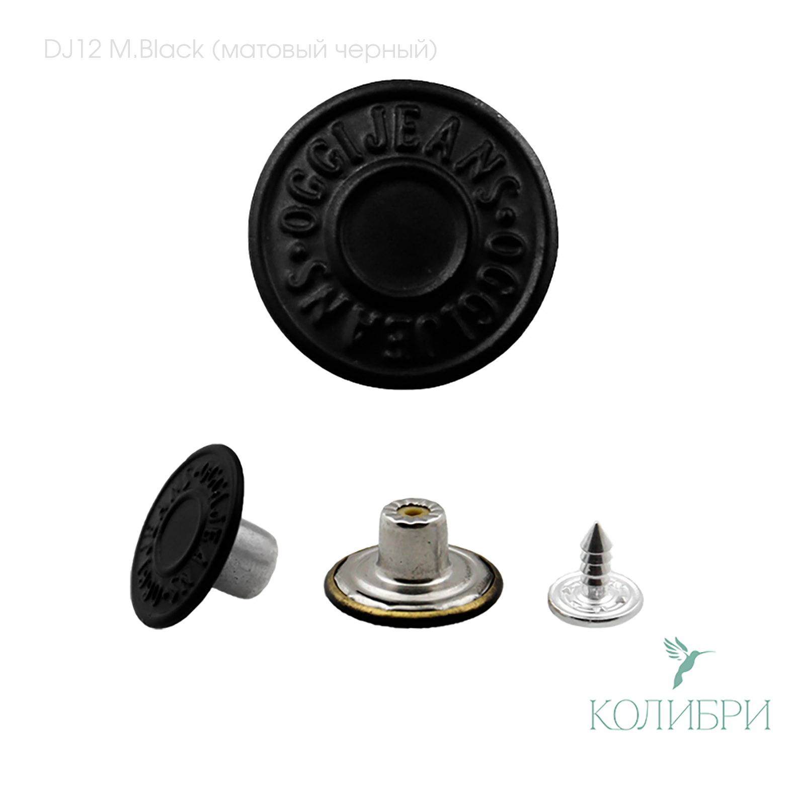 Пуговица джинсовая, фиксированный болт - DJ12, матовый чёрный, 50 шт