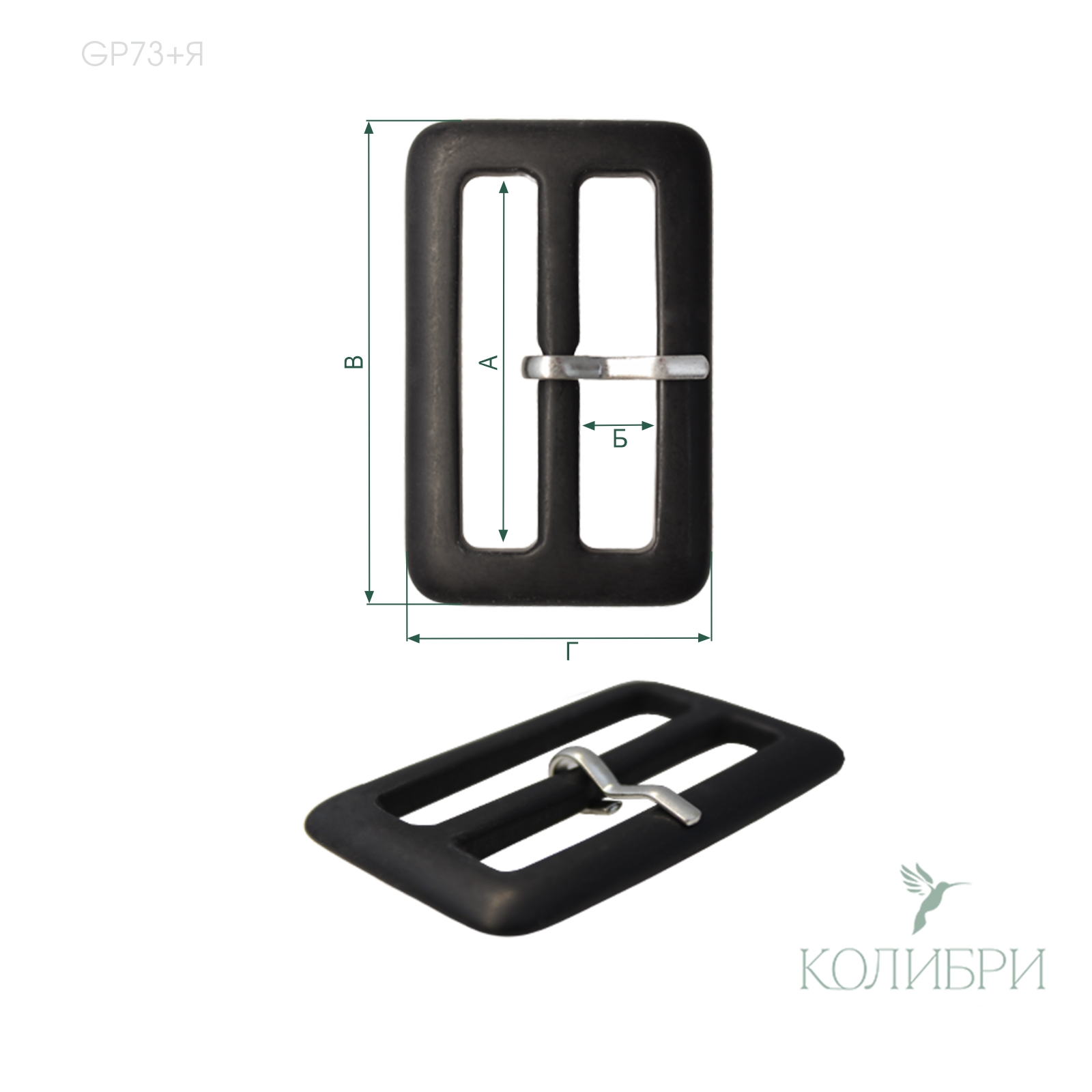 Пряжка пластиковая с язычком - GP73+Я, матовый чёрный, 10 шт