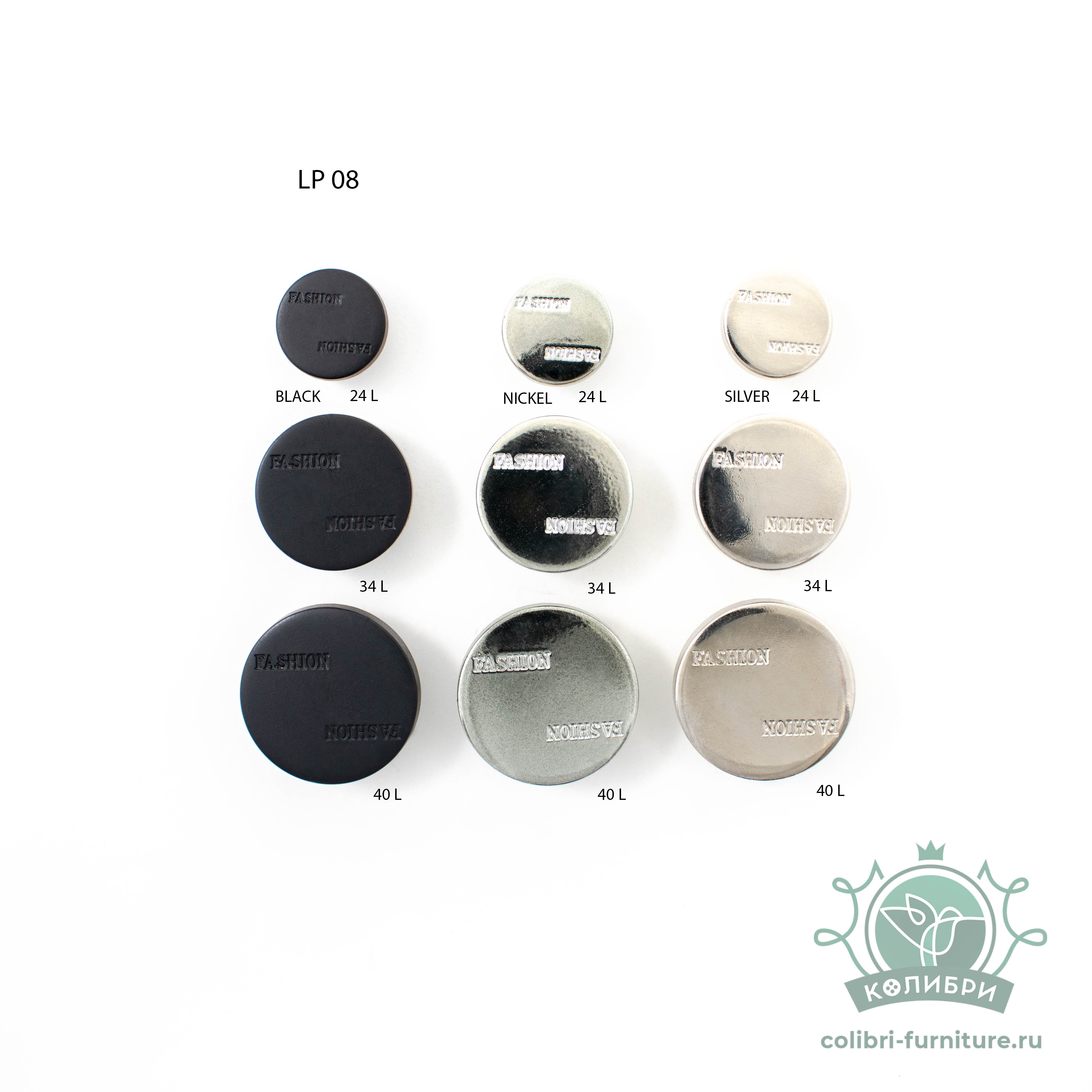 Пуговица пластиковая, под металл - LP08, цвета в ассортименте, 36 шт